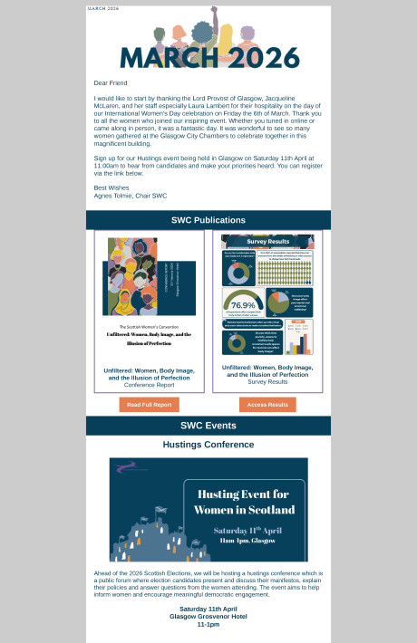 At the SWC we’re always busy keeping women’s voices at the top of the policy-making agenda. To check out what the SWC team were up to during each month of the year, select an image below.